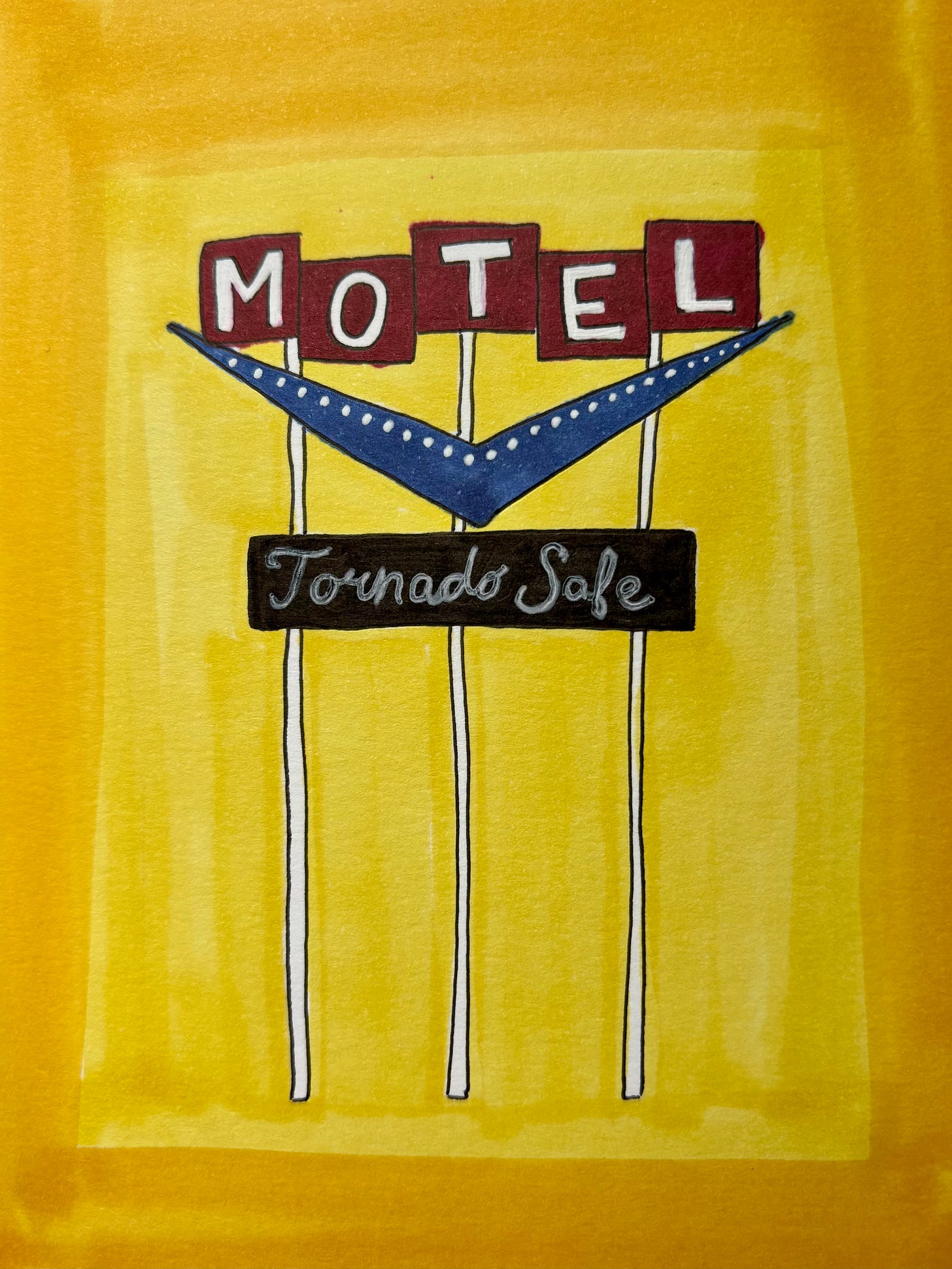 We stood in silence as the elevator took us up. Once in our room, my sister got the children settled in one of the beds. We then collapsed into the other, fully clothed, too exhausted to even process what had just happened. All night, the hotel swayed like a ship at sea as the tornado passed over us, but the building held. When dawn broke, we loaded back into the car beneath clear blue skies, the sun lighting our path as we continued toward our destination.